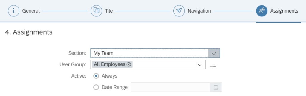 Tiene el encabezado y pie de página junto con el icono «Inicio» y el mismo menú de navegación. Una vez que el usuario termina de ver la aplicación de extensión, puede usar el menú de navegación para cambiar a otras aplicaciones de SuccessFactors.