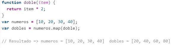 Método prácticamente igual que el anterior pero difiere en que aquí se genera un nuevo array con los resultados devueltos por la función callback.